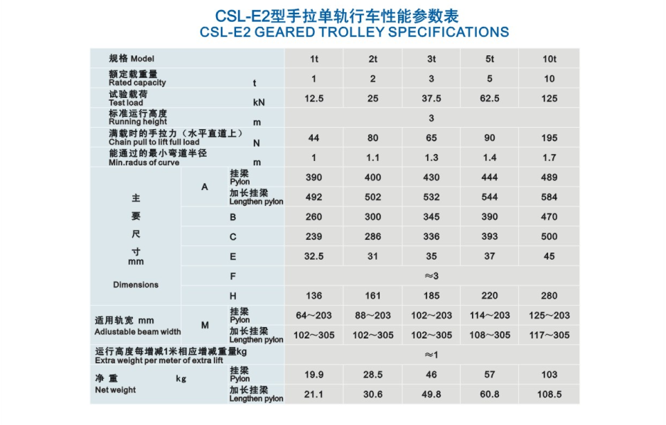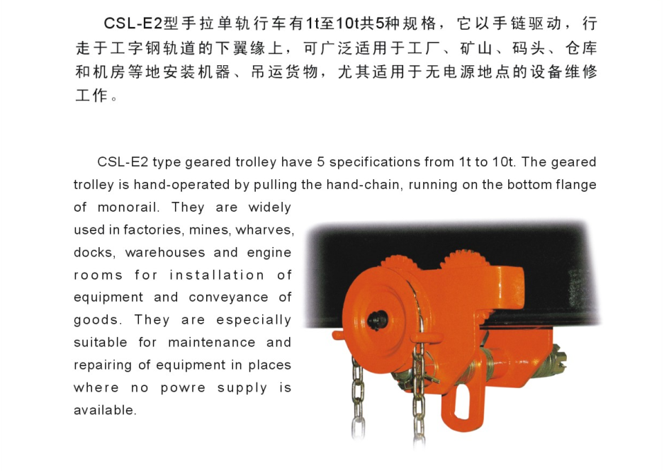 CSL-E2 manual single-girder trolley