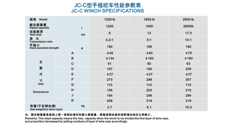 JC‑ C Manual Hand Winch
