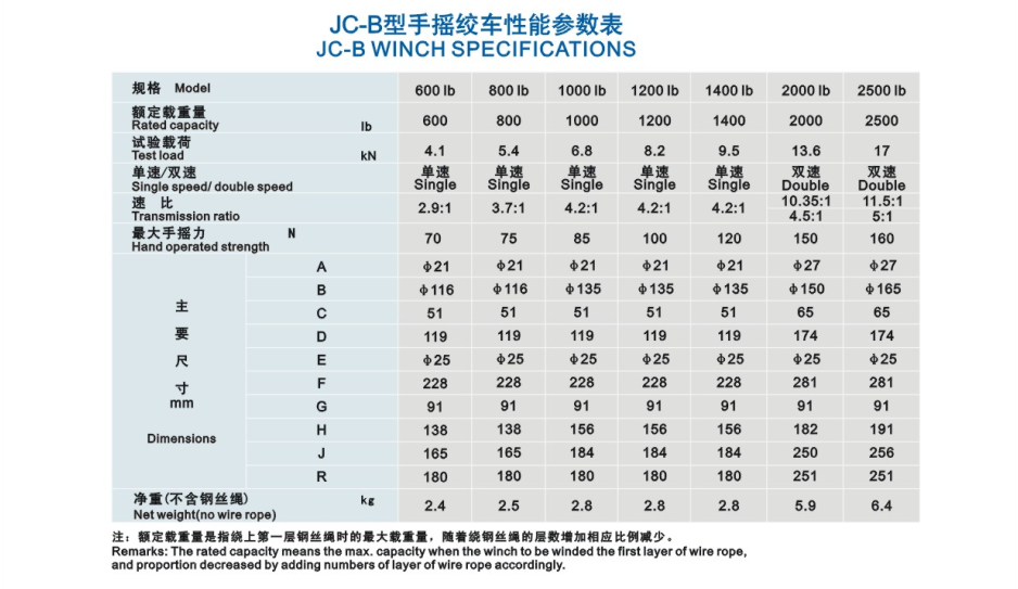 JC‑ C Manual Hand Winch